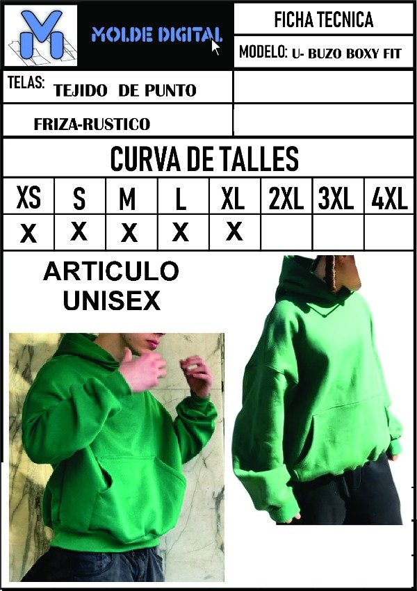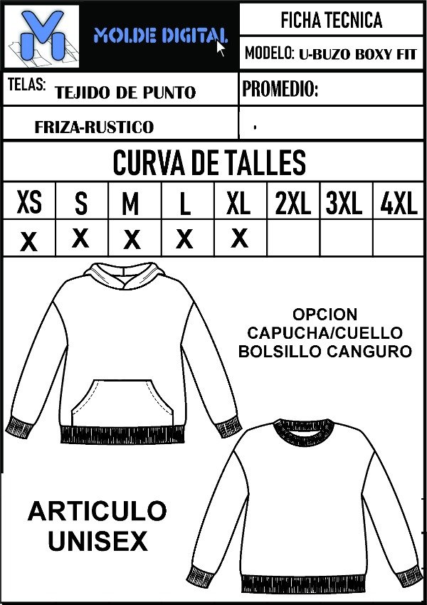 Moldería en cartón: En cartón de 150 gramos, todo recortado por talle y con ficha tecnica del modelo.